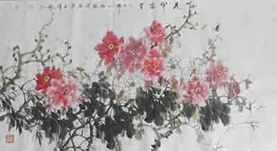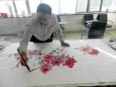 10月7日,当代著名画家王玉伟到访九游网,受到公司领导热情接待。图为王玉伟即兴创作《花开富贵》。(办公室 冯继宏)
